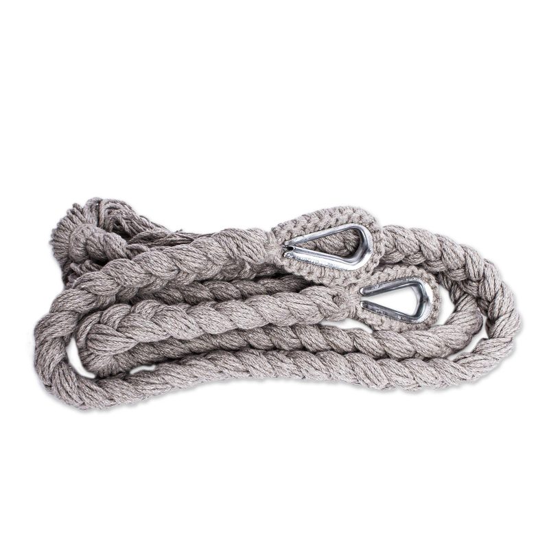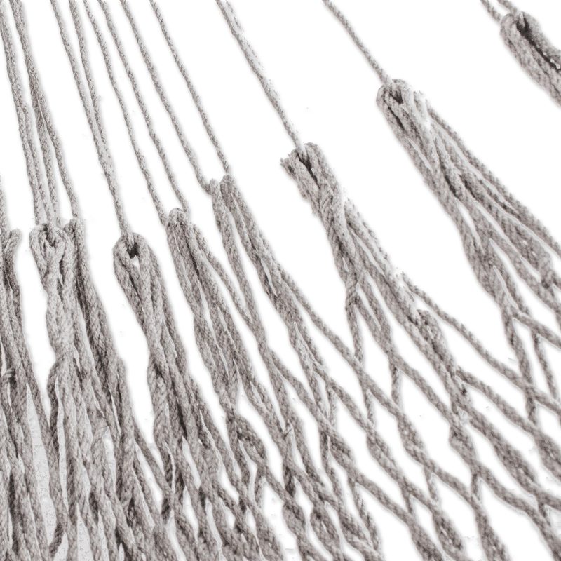 Make your backyard an oasis with this beautiful double hammock from Maya Artists of the Yucatan. Woven in the traditional Maya style from 100% cotton yarns, the grey rope hammock features long, luxurious fringe on both sides.