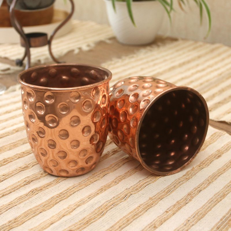Rosy Polka Dots Hammered Copper Cups Handcrafted in Java (Pair)