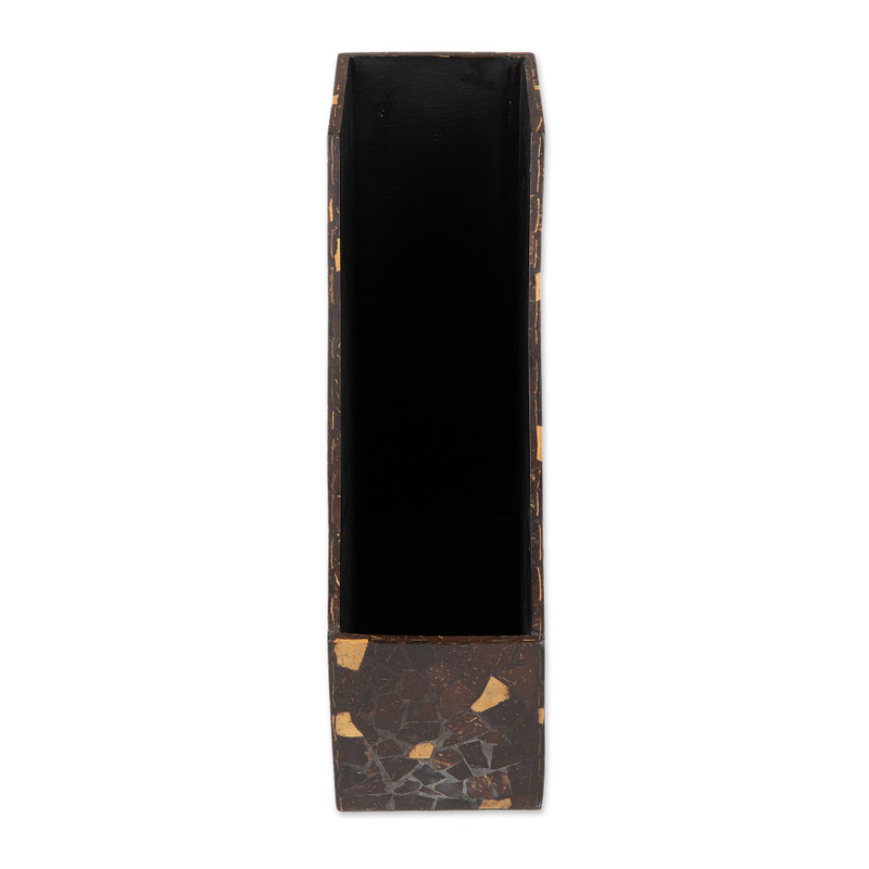 Displaying the natural brown hues of the coconut shell, this file holder is crafted by Indonesian hands. Dewi Hady presents the organizer, making a striking addition to any home or office.