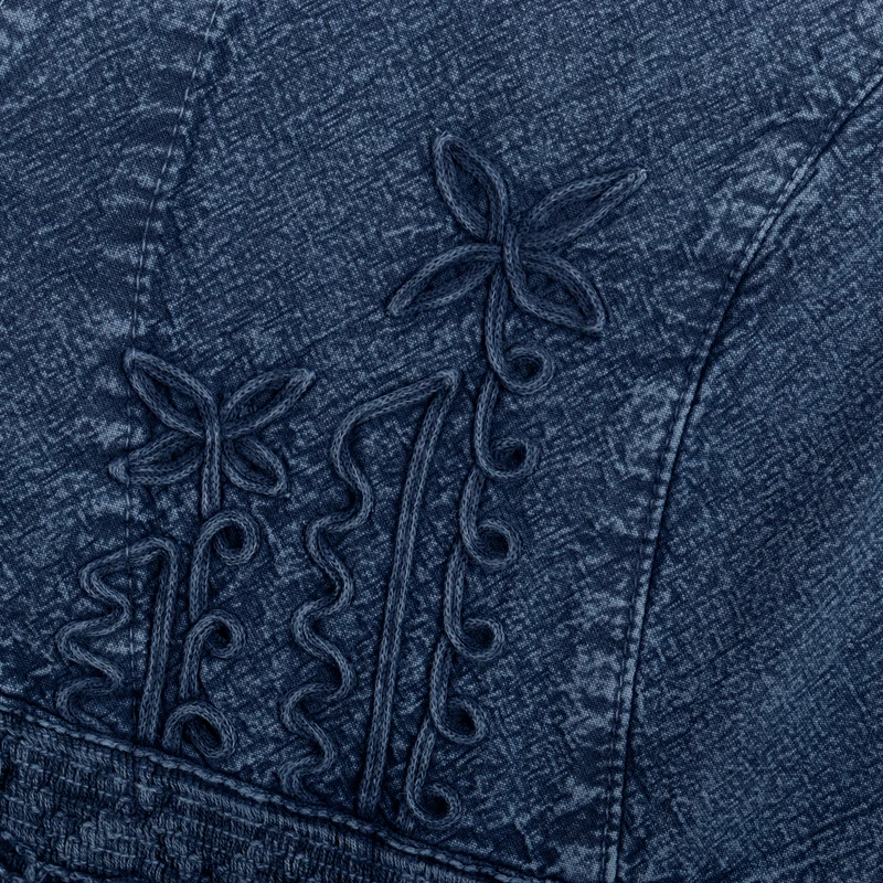 I love this comfortable denim skirt. This is a very comfortable style to wear anywhere. It has very interesting designs in the fabric.