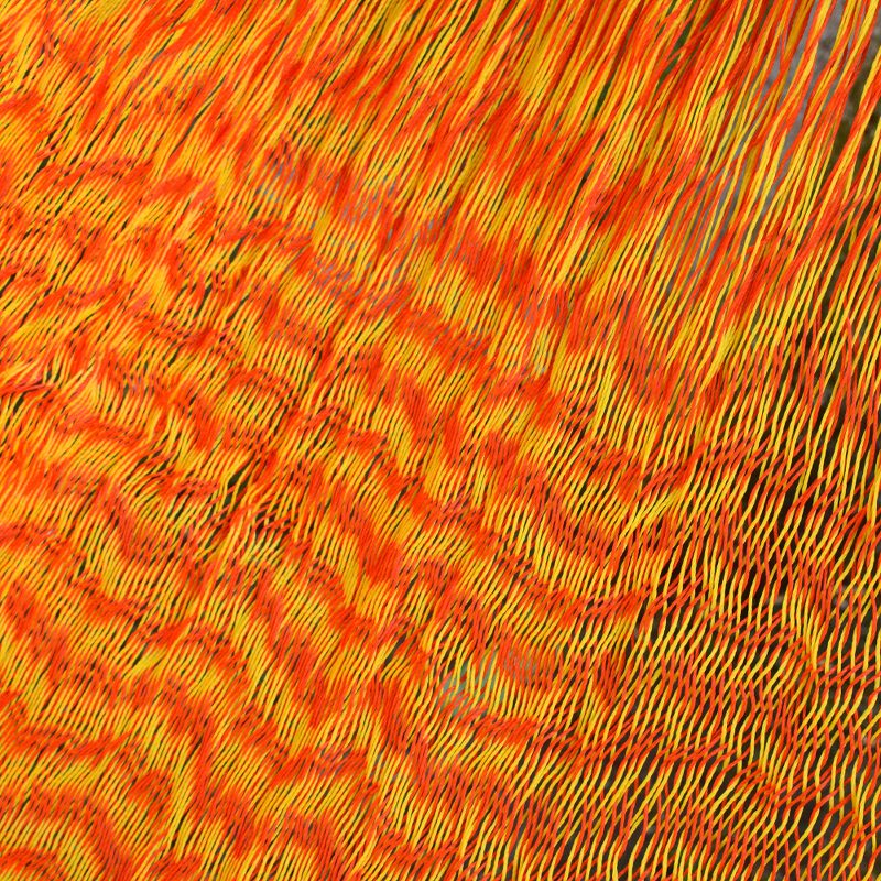 An intricate design from interwoven daffodil and tangerine threads cover the length of this single rope hammock, handwoven by Maya Artists of the Yucatan, who work together to preserve the time-honored weaving traditions of Mexico. Lightweight and comfortable, this gorgeous hammock hangs from steel S-hooks.